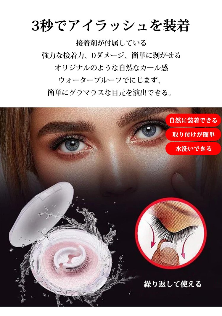 繰り返し使える自己粘着性つけまつげ