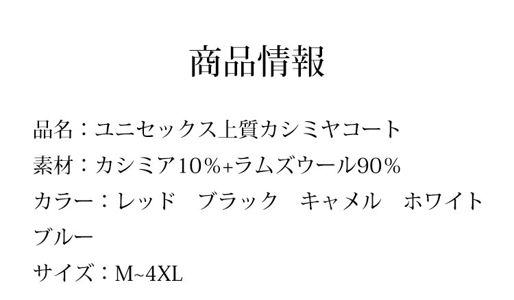 ユニセックス上質カシミヤコート